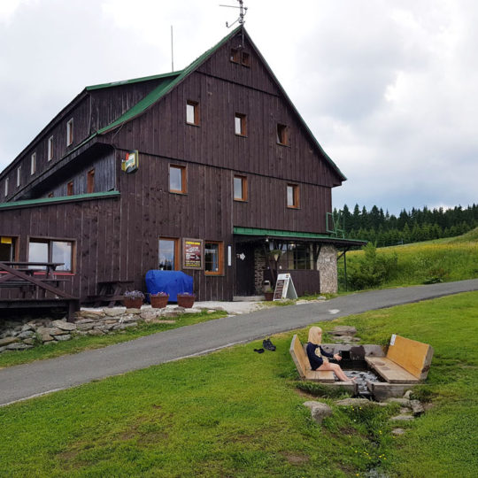 Schauen Sie sich das Restaurant und den Spielplatz an